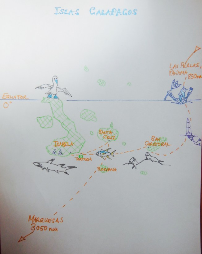 The Galapagos Islands are a small archipelago of islands belonging to Ecuador in the western Pacific Ocean. The islands are quite remote and isolated, lying some 620 miles (1000 km) west of the South American continent. The archipelago consists of 13 main islands and 6 smaller isles, which together embrace some 19,500 sq miles (50,000 sq km) of ocean. A perfect stop for us on our way across the Pacific to French Polynesia.