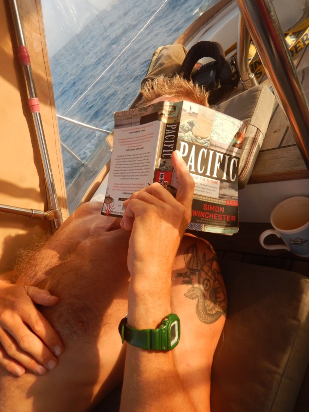 Day 12 saw some fish on the line, as we caught a beautiful mahi mahi, only to lose it 10 metres off the back of the boat as we were reeling it in. This was quickly replaced by a large skipjack tuna, which after battling for about half an hour left the cockpit like a scene from Reservoir Dogs, and dominated our dinner table for many days. It ended up lasting 5 days, and appeared raw, pan fried, Moroccan style, curried and in tacos among other things.