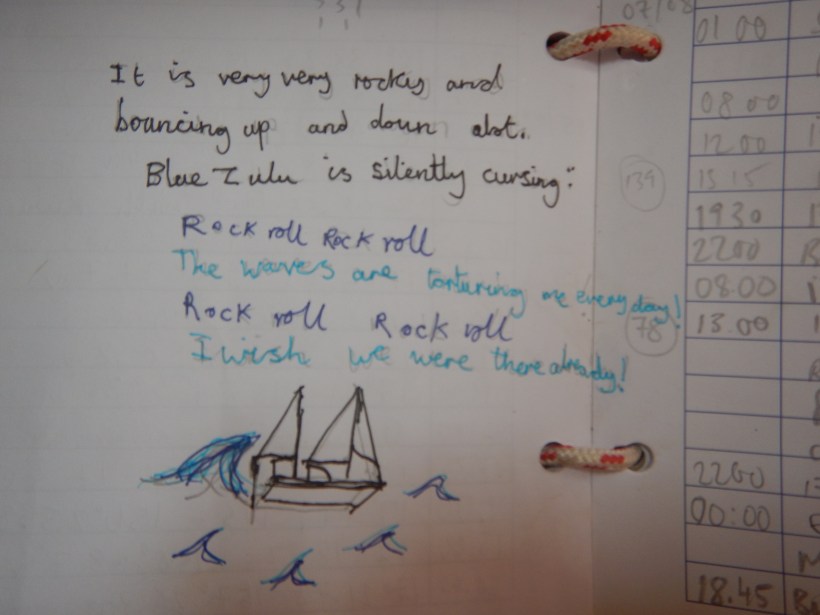 By midnight, as predicted, the wind had backed round to the West and the squalls arrived again, albeit less violent than on our previous passage. A nasty short chop made progress very slow, as Blue Zulu stalled on the waves. We bore away to keep going and soon found ourselves steering due South. It appeared that tacking would see us heading in a better direction, so we went about only to find our new course over the ground was 340. Not sure tacking through 160 degrees rates as a good angle on the wind!