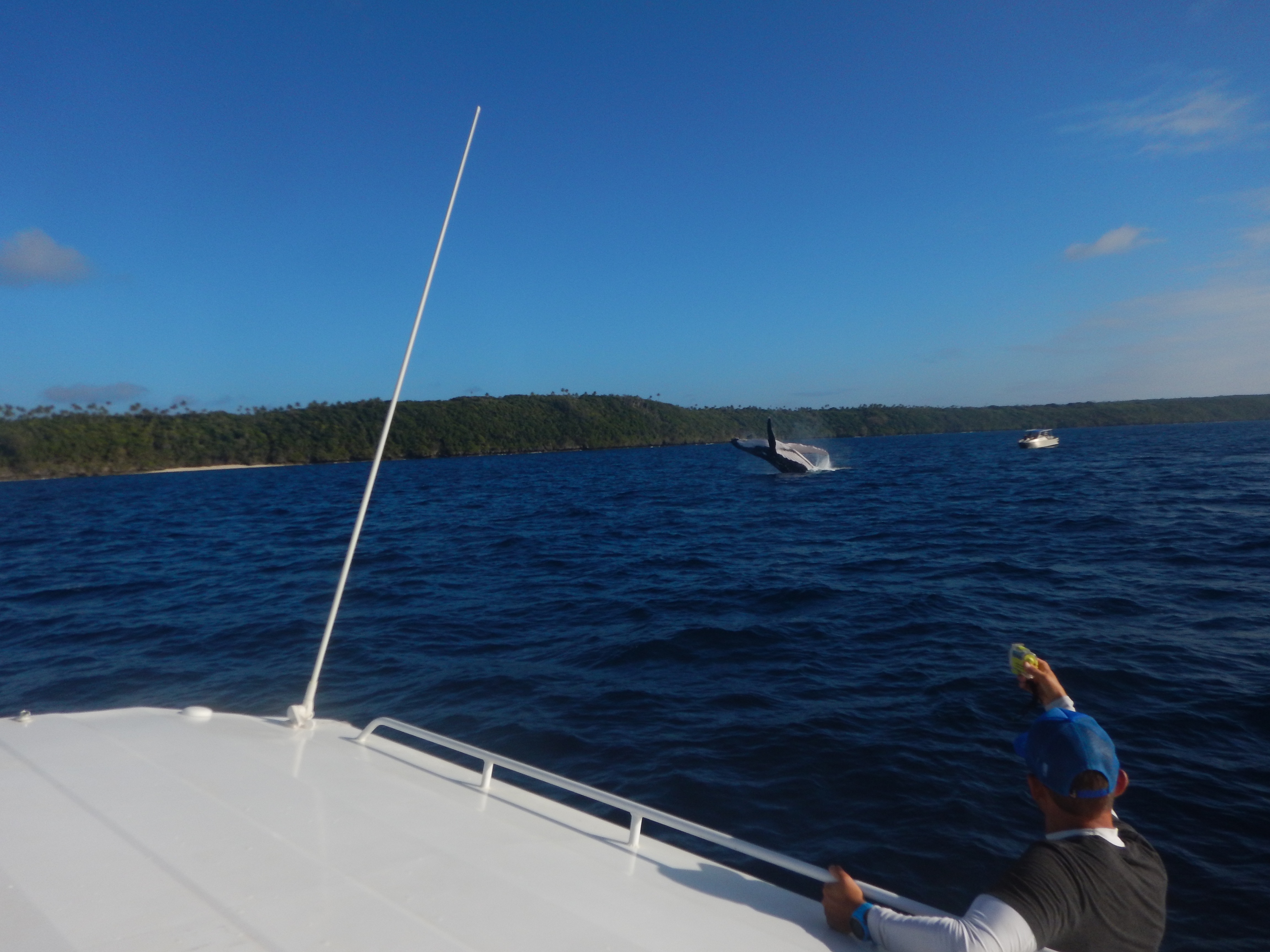 We had a magical day!  It started with the treat of rain and I was worried as it’s difficult to spot the whales in the rain as you are reliant on seeing their spray.  However the weather changed and it soon turned into a magnificent day.  We had a fun group, all young cruisers: two American guys who work for Space X and a Canadian couple. We headed out into the archipelago to try and spot whales. It didn’t take long before we were surrounded.  Humpbacks are the most acrobatic of the large whales and are known for their spectacular breaches, tail lobs and pectoral slaps. Individuals can be identified by their unique dorsal fins and tail flukes.